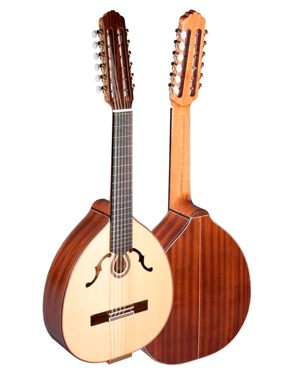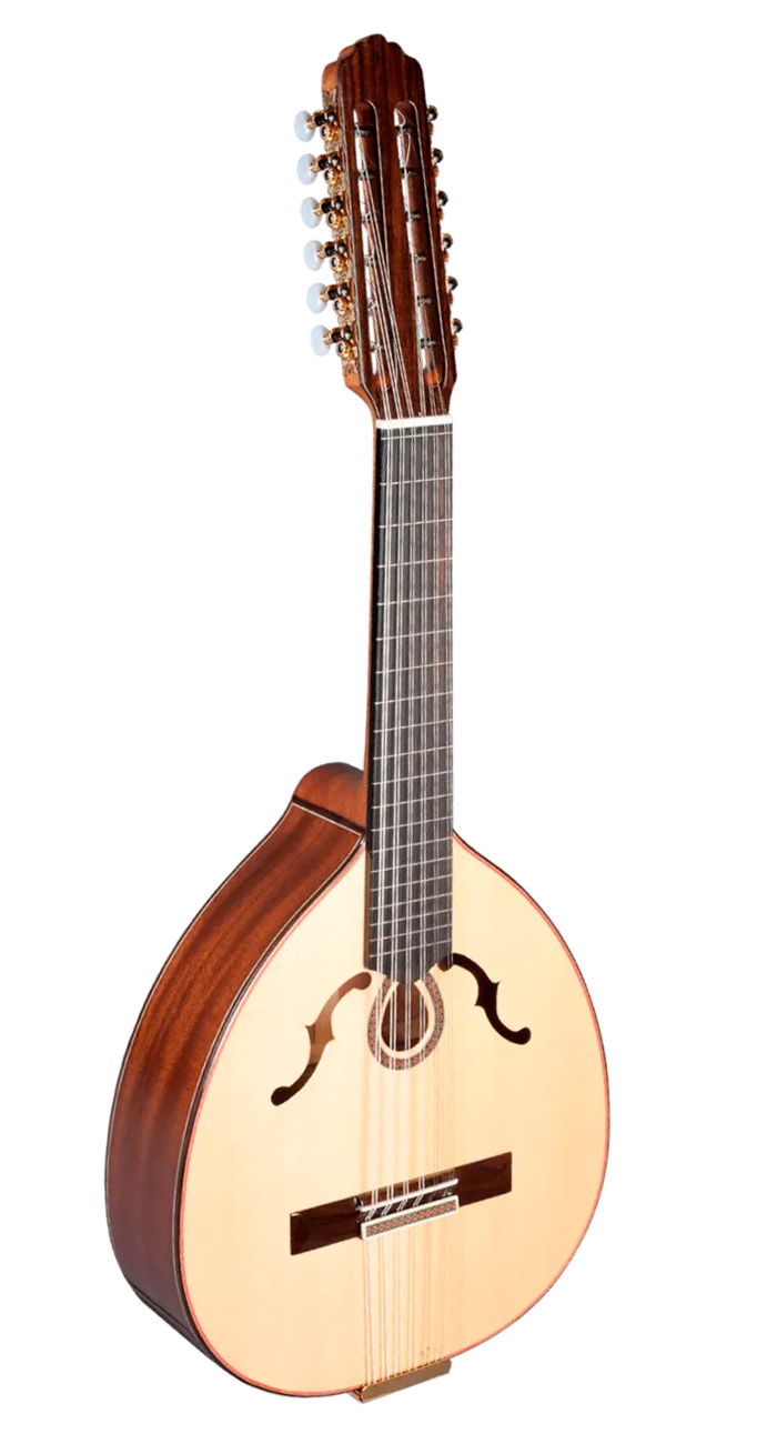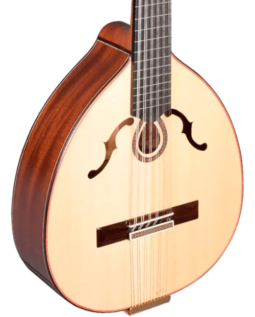 El Laud Paco Castillo L4 se construye con tapa de abeto macizo, fondo y aros de sapelli macizo, una combinación que asegura estabilidad y proyección equilibrada en todo el registro. El mástil es de caoba africana con diapasón de ébano, perfiles de palosanto de India y clavijeros dorados, detalles propios de un instrumento de concierto artesanal cuidado en cada unión y acabado. El acabado brillante realza la veta del sapelli y la elegancia del conjunto, manteniendo la sensación de laúd tradicional dentro de la familia de guitarra clásica y guitarra flamenca.
