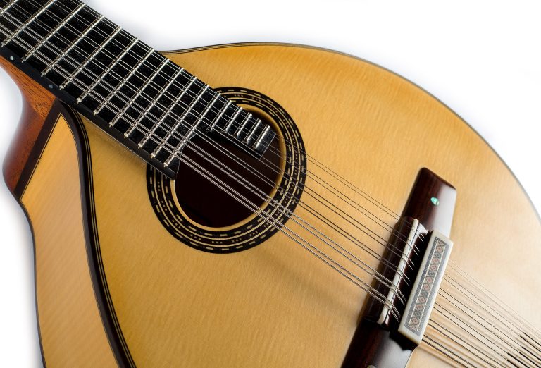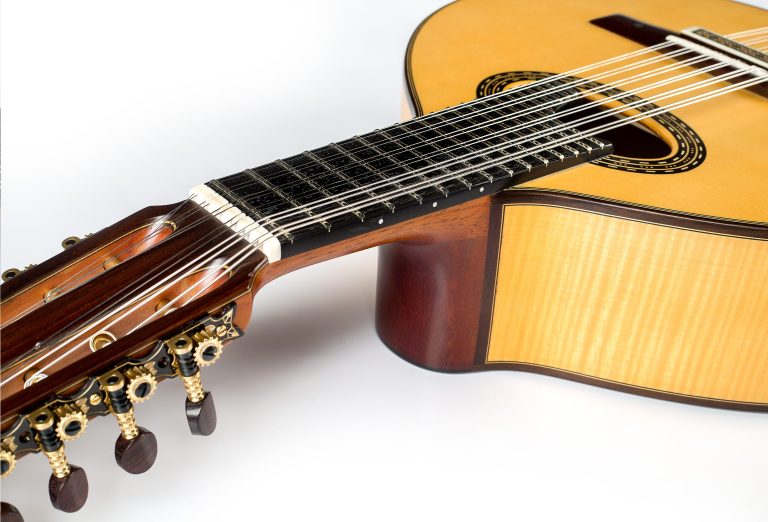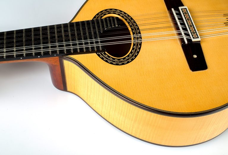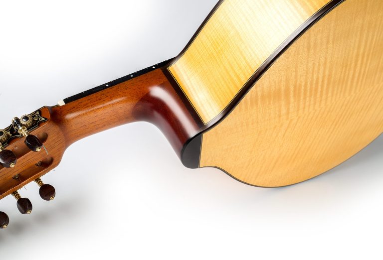 La Bandurria DULCINEA ARCE está construida con una tapa en abeto alemán, fondo y aros en arce rizado seleccionado, madera que otorga resistencia y una estética noble gracias a su veteado característico. El mástil, elaborado en cedro de Brasil, ofrece estabilidad y comodidad al intérprete, mientras que el diapasón en ébano garantiza durabilidad y una respuesta táctil exquisita. El instrumento recibe un barniz de alta calidad que protege la madera sin comprometer la vibración natural, preservando la acústica artesanal que distingue a cada pieza. Todos los materiales son seleccionados cuidadosamente para asegurar un equilibrio entre robustez, belleza y calidad sonora.
