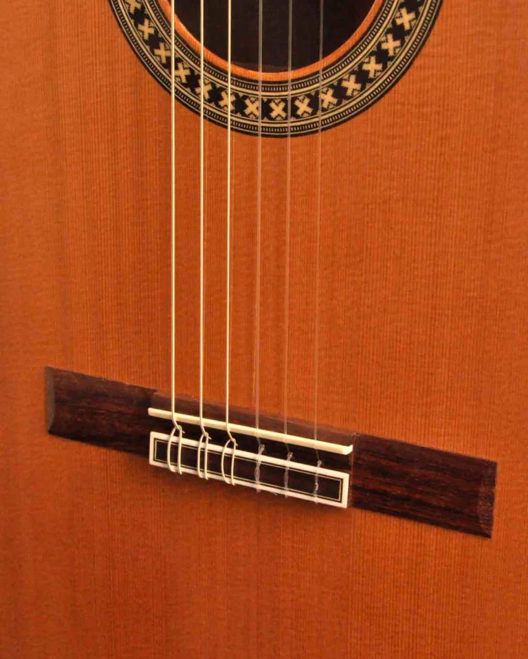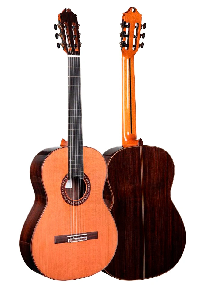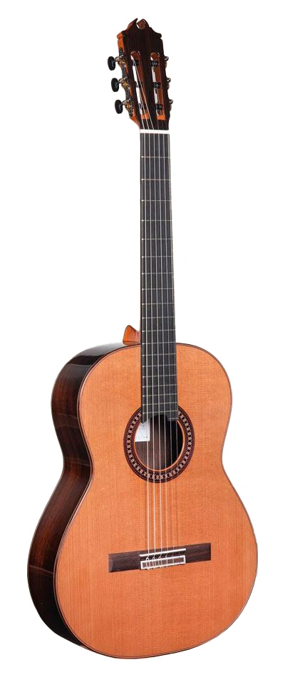 La Camps CL 18 CEDRO cuenta con tapa sólida de cedro macizo, aros y fondo de palosanto de India macizo, mástil de cedro reforzado con varilla bidireccional de fibra de carbono regulable, diapasón de ébano y puente de palisandro, cejuela de 52 mm y hueso en puente y pala. Escala de 650 mm, profundidad de caja 93-98 mm, y barniz de laca nitro brillante aplicado a mano para máxima vibración.