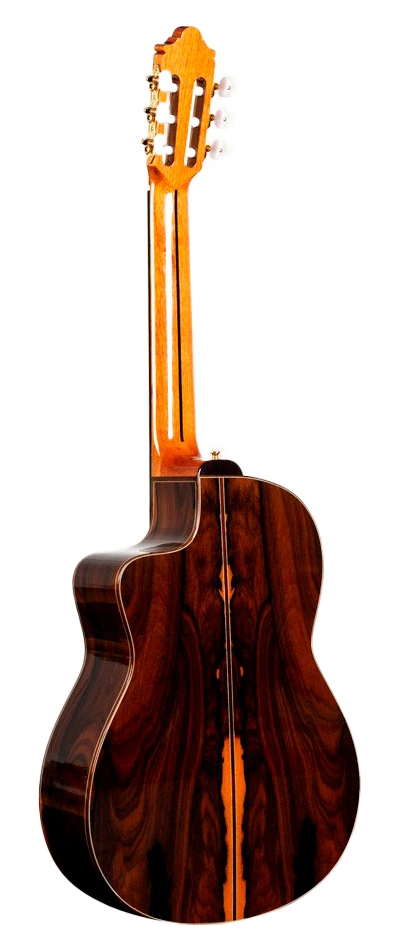 Su timbre ofrece proyección equilibrada y enorme, con graves profundos y potentes sin sombrear los agudos cristalinos, respuesta inmediata en todos los registros y sustain prolongado gracias al ziricote que enriquece la riqueza armónica y el color sonoro. Esta guitarra clásica artesanal de luthier español revela una transparencia y profundidad tonal que envuelve al intérprete en una resonancia viva y texturada, ideal para explorar matices con sonido cálido y proyección natural.
