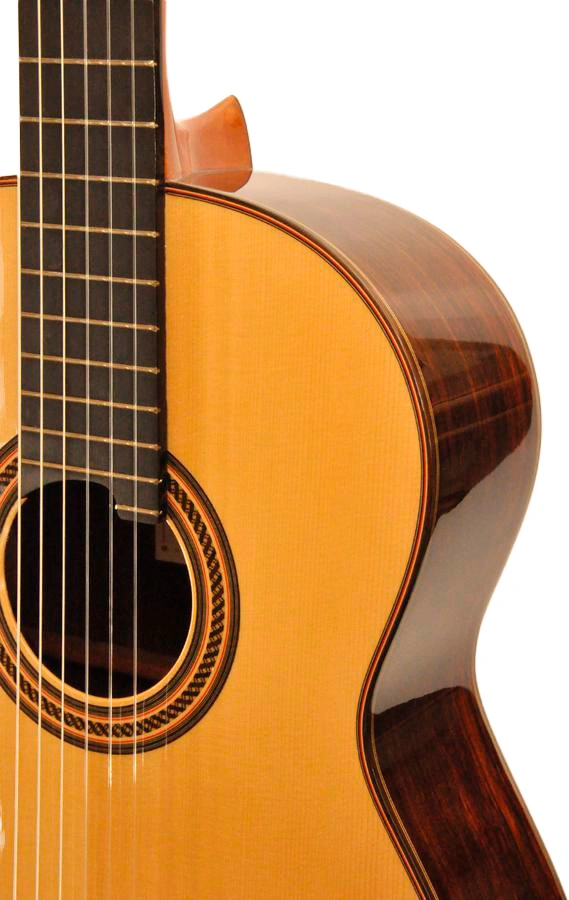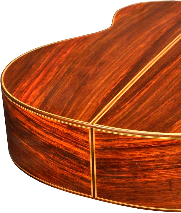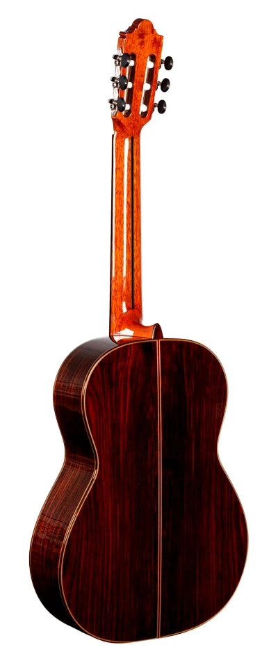 Su timbre ofrece una paleta tonal amplia con sonido cálido, proyección equilibrada y excelente sustain, donde el cedro entrega respuesta inmediata y riqueza armónica, mientras el palosanto de India infunde profundidad y transparencia, ideal para una experiencia interpretativa resonante y envolvente en sesiones íntimas.