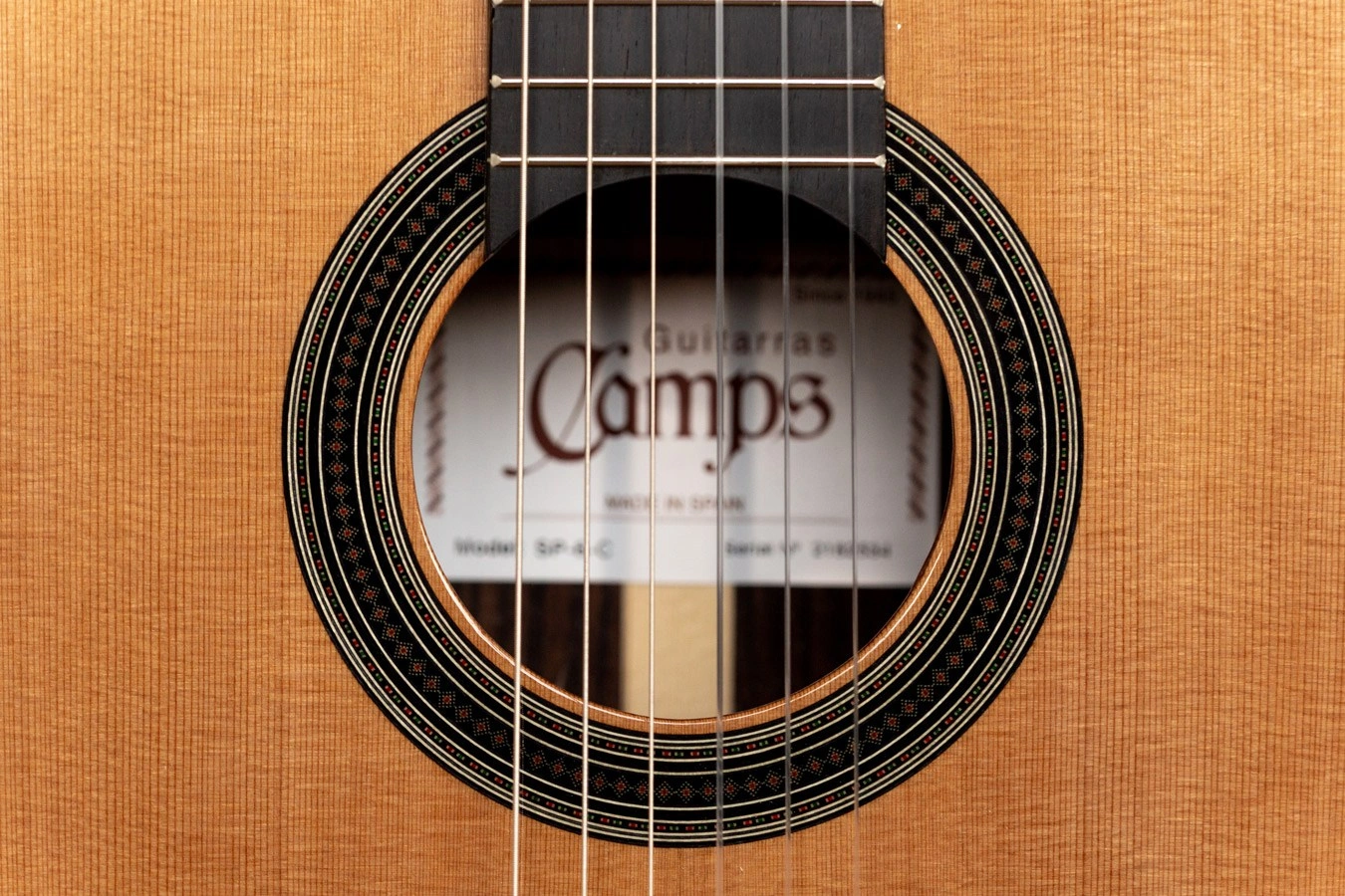 Camps, luthier español con raíces en la tradición artesanal de España, construye guitarras clásicas fieles al estilo original español, priorizando maderas seleccionadas y un diseño que equilibra comodidad y volumen.