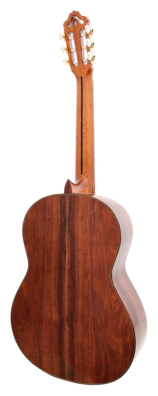 La Esteve 12 es una guitarra clásica profesional toda sólida: tapa en cedro macizo (Thuja Plicata) o abeto alemán (Picea Abies), aros y fondo en granadillo (Platymiscium Yucatanum), mástil de cedro (Cedrela odorata) reforzado con fibra de carbono, diapasón de ébano (Diospyros ebenum) y acabado en nitrocelulosa para una vibración natural y óptima. Su escala de 650 mm y cejuela de 52 mm aseguran ergonomía y estabilidad españolas auténticas, hecha en España por maestros luthiers.