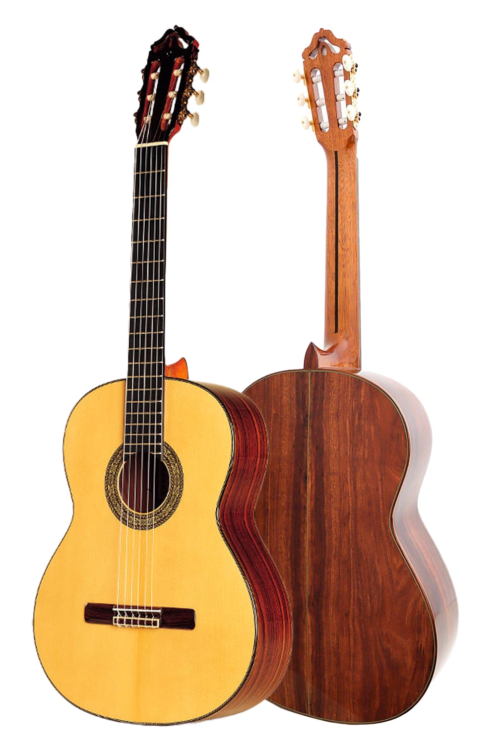 Con tapa de abeto alemán, el carácter se vuelve más transparente y definido, con un timbre más claro y brillante, especialmente en el registro agudo. El abeto ofrece una respuesta algo más elástica, con mayor margen dinámico y una proyección equilibrada que crece con los años y el uso, perfecta para guitarristas que valoran la articulación limpia, el contraste entre pianissimo y forte y una guitarra profesional que se abre y evoluciona con el tiempo.