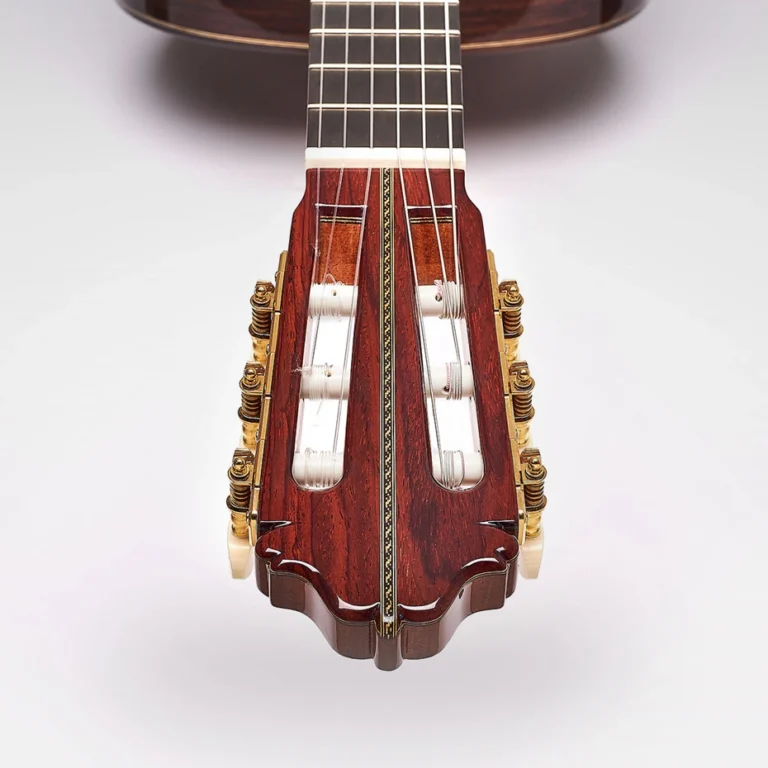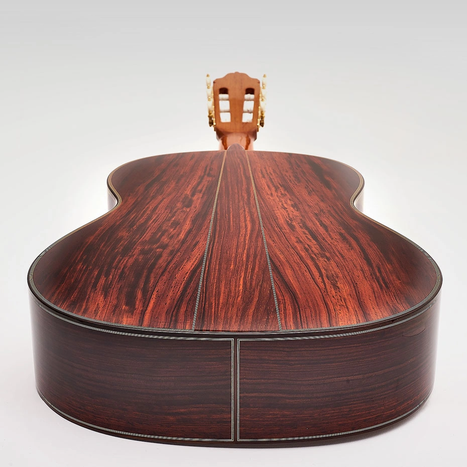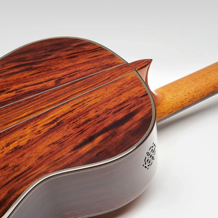 Su timbre ofrece un sonido cálido y envolvente, con profundidad tonal en los graves, medios muy presentes y agudos claros pero nunca agresivos. La respuesta es inmediata, con sustain generoso y una proyección equilibrada que llena la sala sin perder transparencia ni control al tocar pianissimo. La doble tapa y el cocobolo proporcionan una riqueza armónica notable, ideal tanto para repertorio clásico como para quien busca una guitarra española versátil que dialogue bien con toques de guitarra flamenca más contenidos.