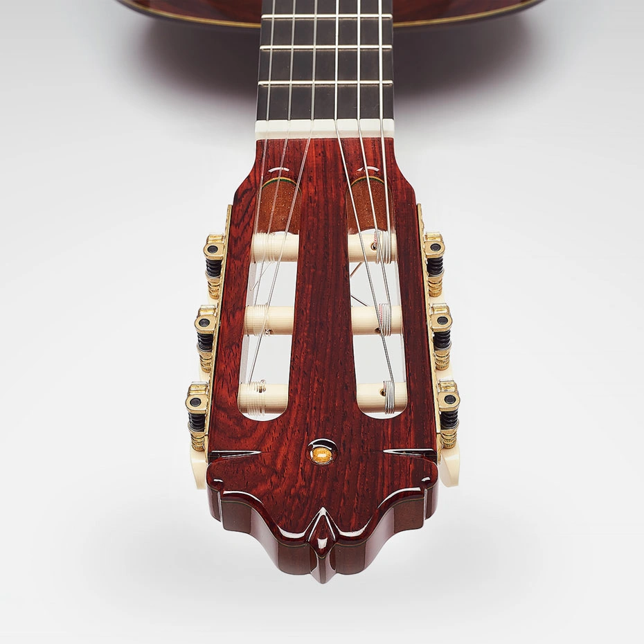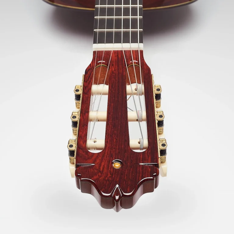 La combinación de cedro o abeto con cocobolo genera un sonido cálido, generoso y muy expresivo, con graves abiertos, medios redondos y agudos brillantes pero sin dureza. La estructura lattice potencia la resonancia y la proyección volumétrica, permitiendo que el instrumento se abra con facilidad y responda a los matices más sutiles, ideal tanto para estudio en casa como para espacios más amplios. La guitarra se siente sensible bajo los dedos, con una respuesta inmediata y una armónica rica que invita a explorar repertorios clásicos, flamencos y de cámara, manteniendo siempre una acústica natural y muy “orgánica”.