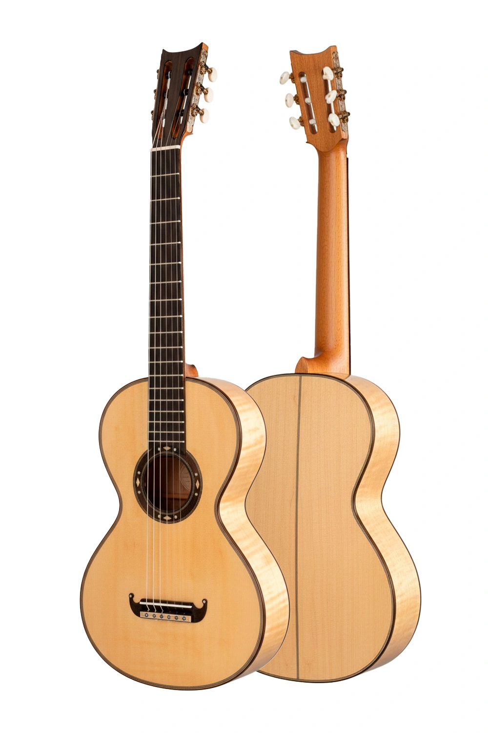 La guitarra clásica Romántica de Juan Hernández es un homenaje vivo a la tradición de las guitarras románticas de finales del siglo XVIII, reinterpretado con la precisión acústica de un luthier español contemporáneo.
