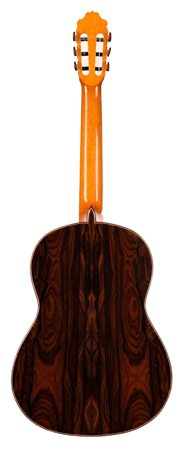 Frente a la versión de cedro, el abeto aporta un registro más cristalino, con mayor sensación de aire entre notas, un ataque más perfilado y una separación de voces especialmente limpia. El resultado es una guitarra profesional de gran proyección equilibrada, con graves firmes, medios enfocados y agudos brillantes pero elegantes, capaz de ofrecer riqueza armónica, respuesta inmediata y una acústica natural muy expresiva al mínimo matiz de la mano derecha. Su timbre no renuncia a la profundidad tonal; simplemente la articula con más claridad, más transparencia y una sensación de ligereza vibrante que hace la pulsación especialmente adictiva en casa, en estudio o en cualquier entorno íntimo de escucha.