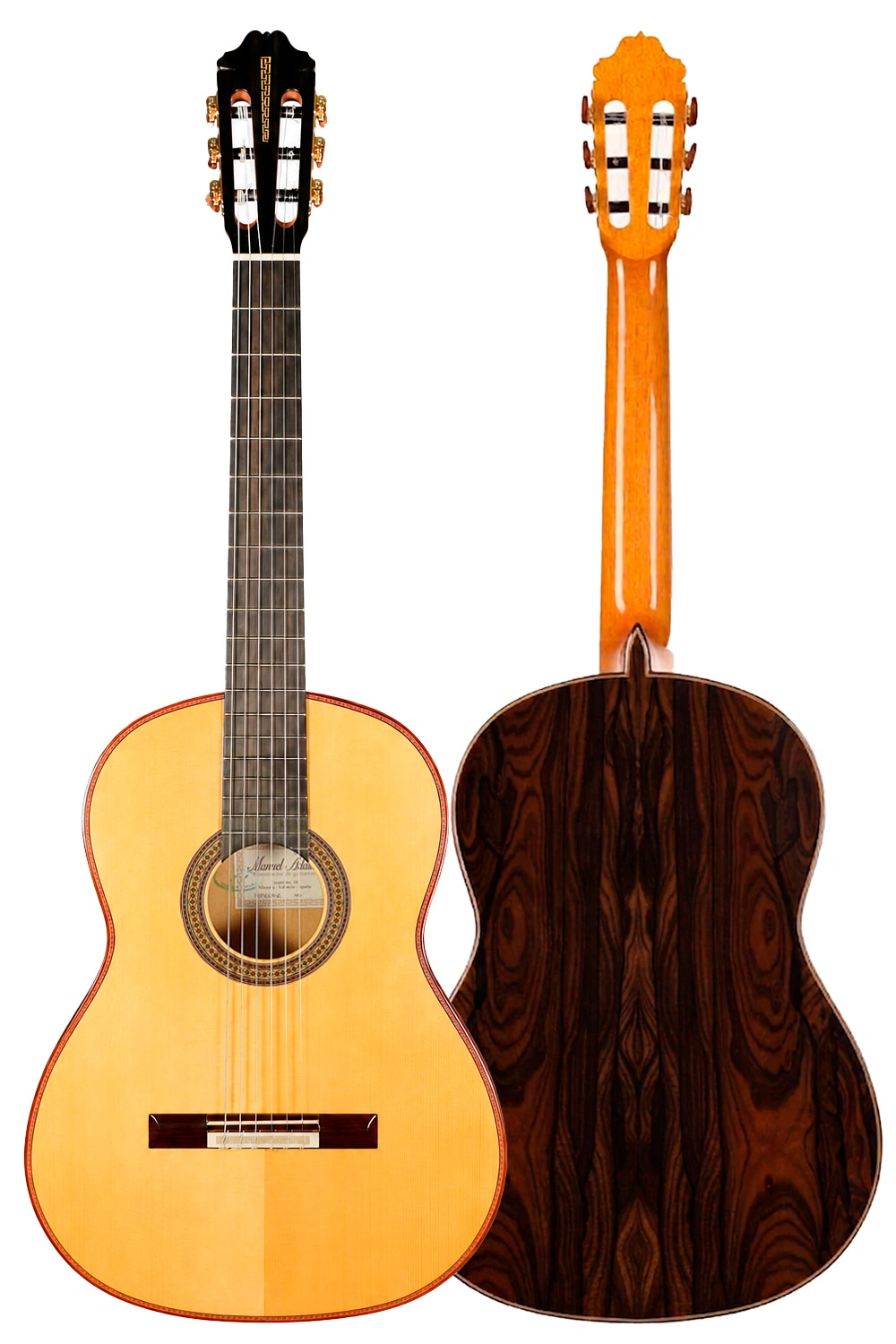 Manuel Adalid es uno de los nombres de referencia de la luthería valenciana actual, y la línea Homenaje ocupa un lugar destacado dentro de su catálogo por combinar oficio tradicional, refinamiento estético y soluciones constructivas de alto rendimiento. Esta serie se distingue además por detalles ornamentales sobrios en cabeza y culata, junto a una concepción pensada para ampliar proyección, sustain y eficiencia acústica sin perder el sello de la guitarra española artesanal.