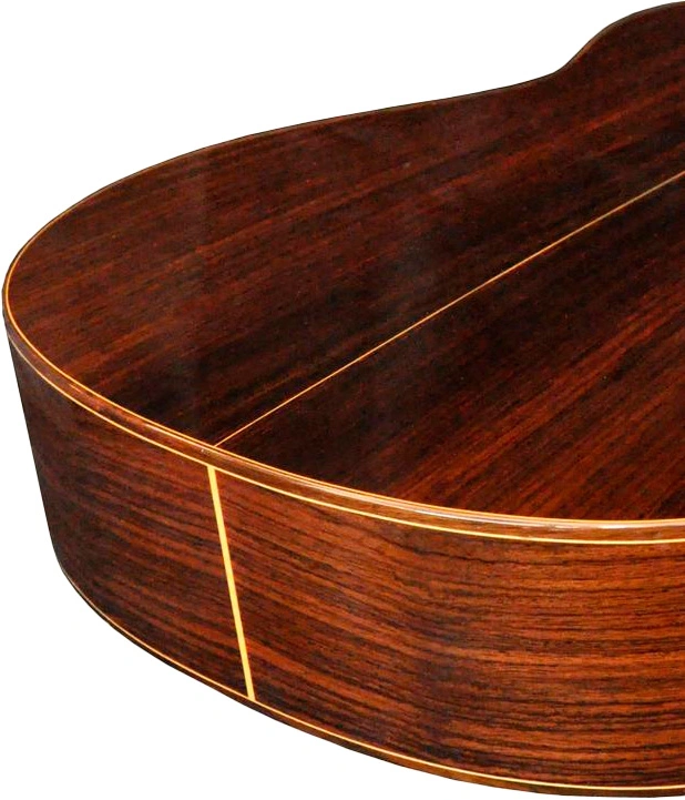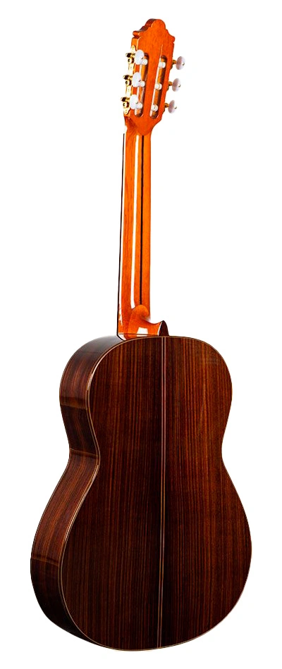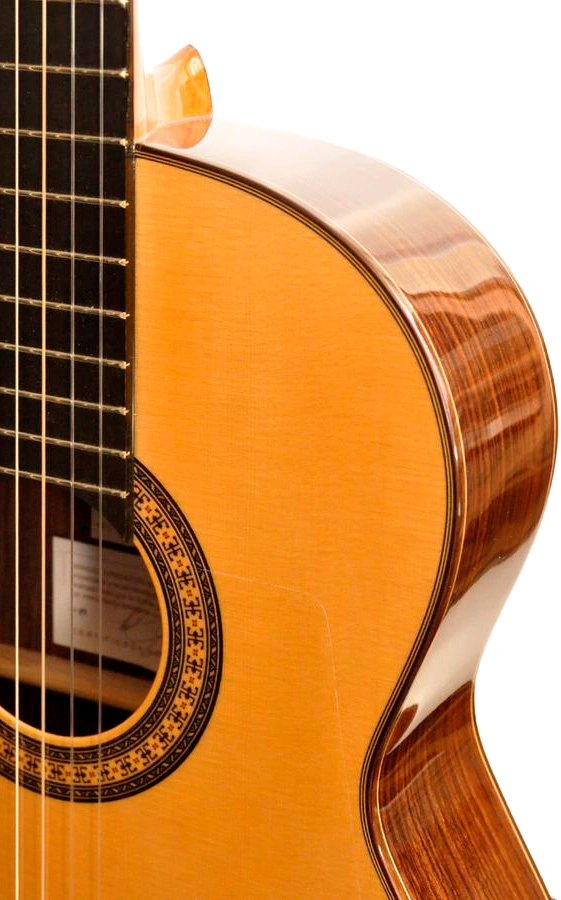 Su sonido flamenco ofrece respuesta inmediata y proyección equilibrada, con mayor volumen y riqueza armónica gracias al palosanto denso frente a la ciprés blanca. La resonancia profunda, sustain cálido y transparencia tonal evocan una acústica natural versátil, ideal para palos intensos o piezas clásicas, con un timbre que envuelve el espacio hogareño en profundidad sensorial.