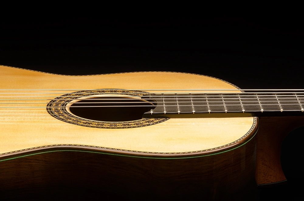 Su timbre evoca profundidad tonal con bajos potentes y redondos que se entrelazan con agudos brillantes y cristalinos, entregando proyección equilibrada y respuesta inmediata al toque. La riqueza armónica y sustain prolongado crean una transparencia sonora que invita a explorar cada matiz, ideal para una guitarra flamenca profesional con sonido cálido y polivalente.
