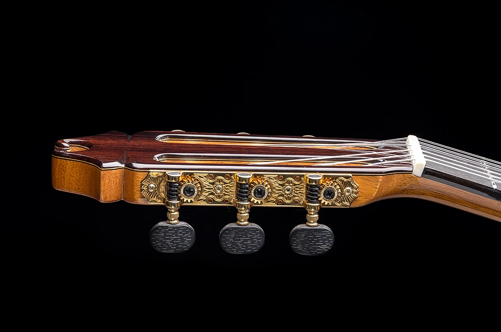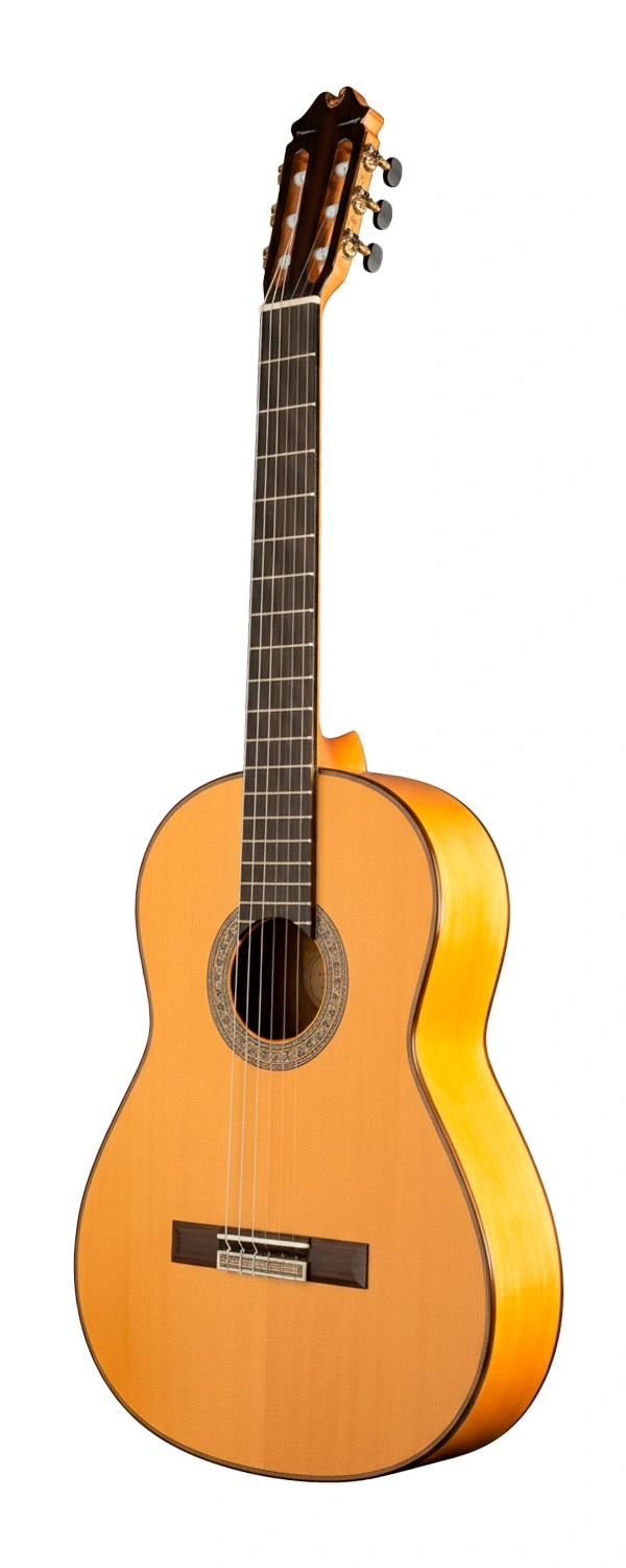 En lo sonoro, esta guitarra española ofrece un ataque inmediato, con graves secos y definidos, medios presentes y agudos brillantes que cortan con facilidad en cualquier contexto. La respuesta es rápida y muy sensible a la mano derecha, ideal para rasgueos, alzapúas y picados con gran proyección equilibrada, pero también capaz de un sonido cálido en toques más contenidos. Su riqueza armónica se mantiene controlada, priorizando la claridad y la transparencia sobre el exceso de sustain, lo que facilita el control rítmico y la articulación precisa tanto al aficionado exigente como al guitarrista profesional.