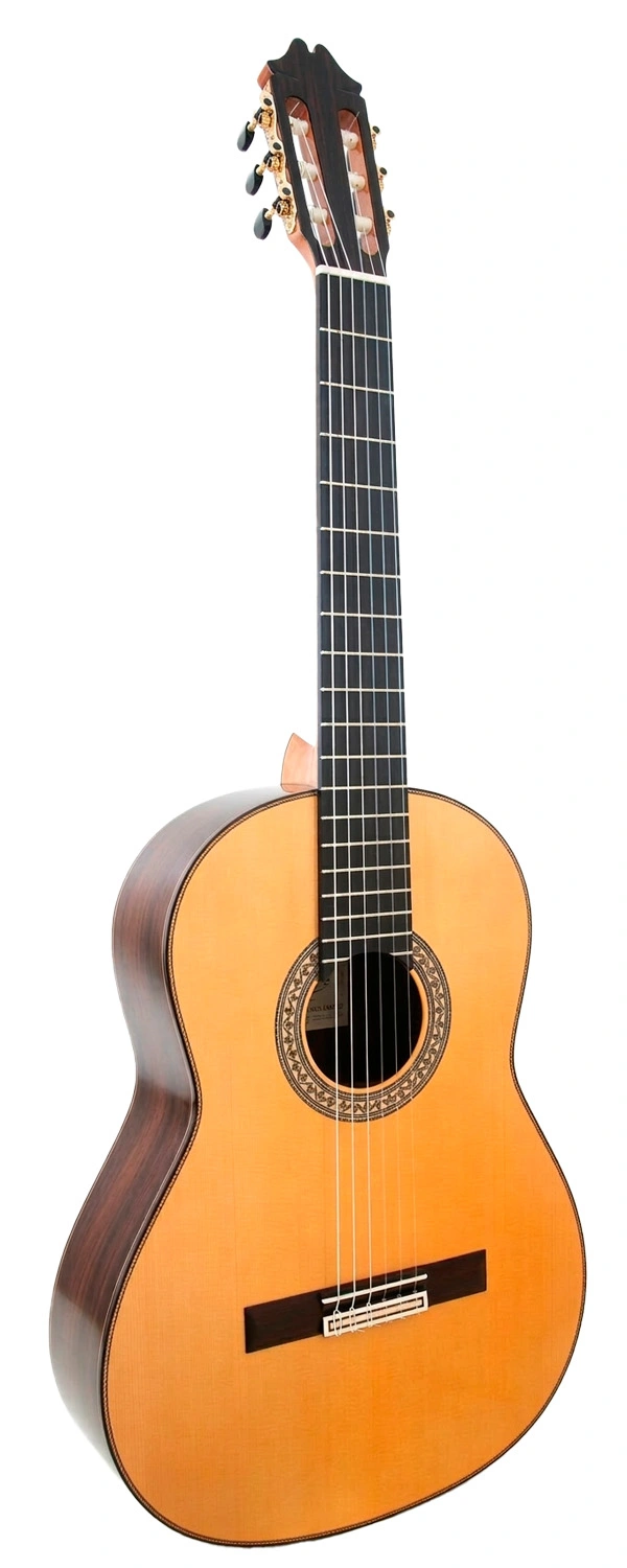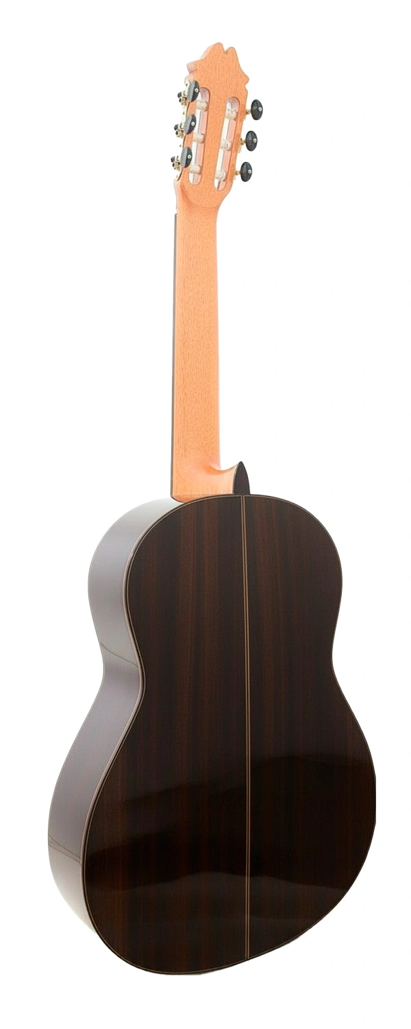 El timbre es profundo y cálido, con una base de graves muy presente, medios bien tejidos y agudos brillantes pero redondeados, sin caer en la dureza. La riqueza armónica y el sustain más prolongado del palosanto de India permiten una mayor proyección, ideal para tocar en espacios amplios o con acompañamiento, pero también se traducen en un instrumento extremadamente expresivo en casa, donde cada matiz de color tonal resulta fácil de captar. La respuesta inmediata al pulgar y al rasgueo, junto con una acústica natural muy equilibrada, la convierte en una guitarra que invita a explorar la profundidad del sonido flamenco sin sacrificar la comodidad o la claridad.