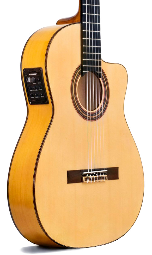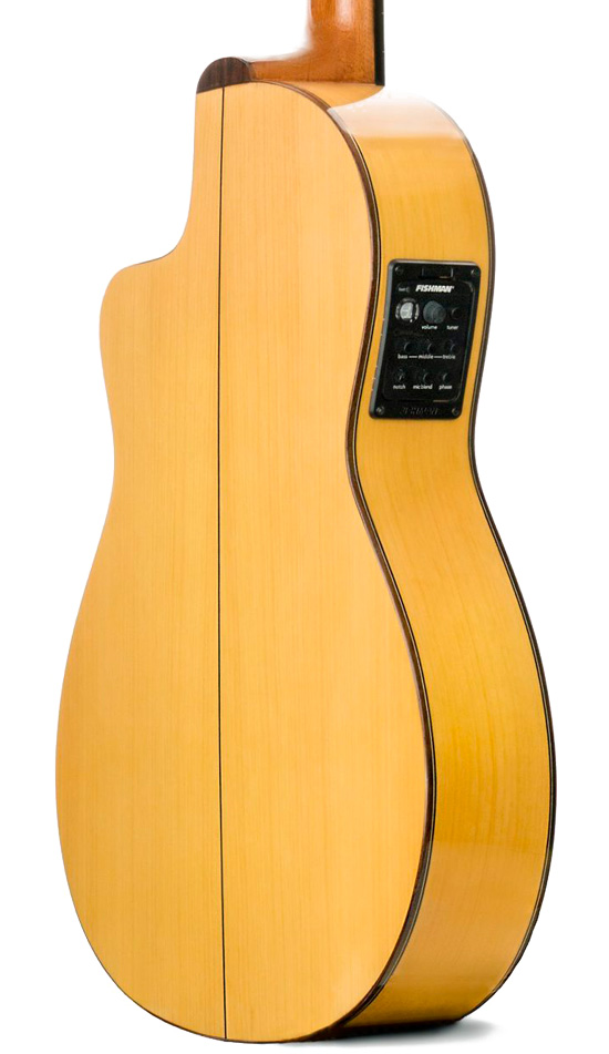 Una guitarra clásica y flamenca cutaway artesanal que invita a sentarse, conectar o tocar en acústico y dejar que su resonancia y su comodidad hagan que cada rato en el salón se sienta como un pequeño lujo sonoro hecho en España.